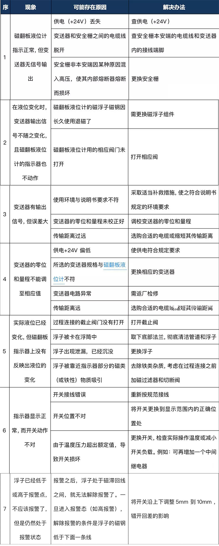 磁翻板液位計(jì)常見(jiàn)故障與處理方法